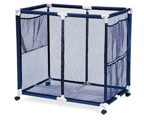 Try using a net storage system that allows your items to dry and keeps them neatly stored. Mesh pockets around the pool organizer makes it easy to retrieve small pool toys, balls, and pool safety equipment. Plus, the whole item can roll while you store your large pool toys keeping your pool organized.